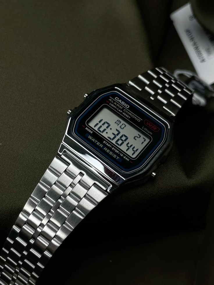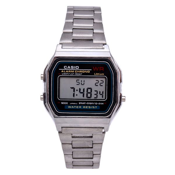 نوع نمایش: دیجیتال موتور: کوارتز ژاپنی دقیق جنس بند: استیل ضدزنگ رنگ بدنه و بند: نقرهای نوع صفحه: السیدی با نور پسزمینه الکترولومینسانس قاب: رزین با فریم فلزی مقاومت در برابر آب: تا عمق ۳۰ متر (مناسب برای شستوشوی دست یا باران، اما نه برای شنا) ویژگیها: کرونومتر (Stopwatch) آلارم روزانه تقویم خودکار نور پسزمینه EL منبع انرژی: باتری مدل CR2016 با عمر تقریبی ۷ سال اورجینال ضد حساسیت مناسب برای استایل روزمره کلاسیک ورسمی