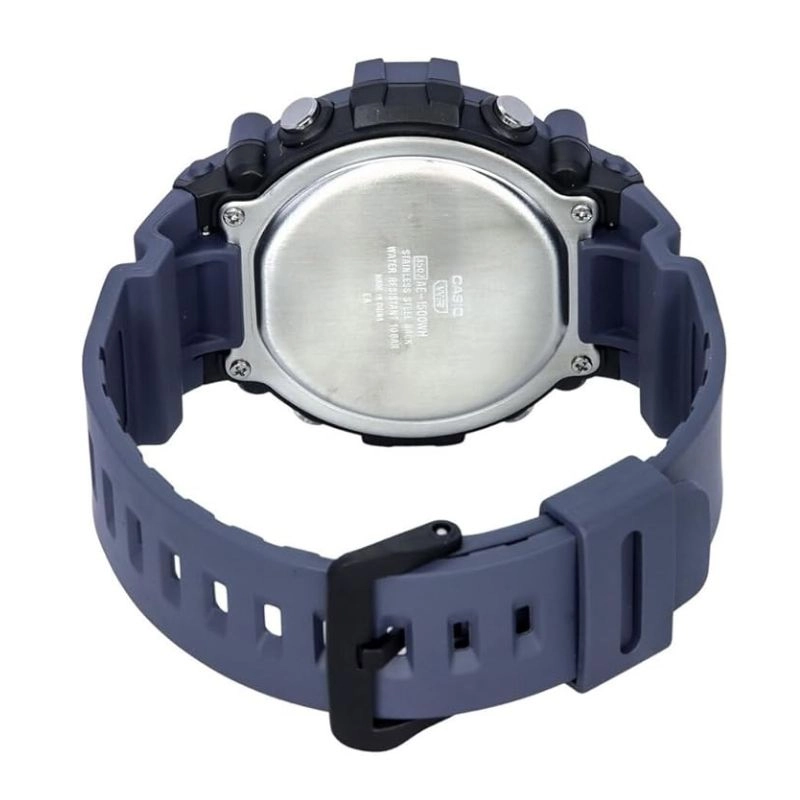 مناسب برای : آقایان مقاومت در برابر آب تا : 100 متر منبع انرژی : باتری معمولی فرم قاب : گرد جنس بدنه : رزین جنس قاب : رزین جنس بند : رزین نوع قفل : سگکی ساده عمرباتری : حدود 10 سال (باتری CR2032) گارانتی : 12 ماه پوزیترون نوع ساعتدیجیتال اندازه ساعت54.4 × 51.2 × 15.7 عرض (میلیمتر)51.2 ضخامت (میلیمتر)15.7 وزن57 گرم برندکاسیو (CASIO) مقاومت در برابر آب تا100 متر منبع انرژیباتری معمولی فرم قابگرد جنس بدنهرزین جنس قابرزین رنگ بدنهسرمه ای رنگ صفحهکهربایی رنگ قابسرمهای جنس شیشهرزین جنس بندرزین رنگ بندسرمه ای اندازه بندبند با قفل قابل تنظیم بین 145 تا 215 میلیمتر زمان جهانیزمان دوگانه کرنومتربا دقت 1/100 ثانیه با ظرفیت 23 ساعت و 59 دقیقه و 59.99 ثانیه حالتهای اندازهگیری: زمان سپری شده، زمان مقطعی و زمانهای رکورد اول و دوم تایمربا دقت 1 ثانیه ظرفیت 24 ساعت تایمر شمارش معکوس آلارم5 آلارام روزانه (همراه با یک آلارم توقف موقت snooze) سیگنال ساعتی نورپردازی و رنگ نورنور پسزمینه LED کهربایی تقویمتمام خودکار تا سال 2099 عمرباتریحدود 10 سال (باتری CR2032) دقت ساعت±30 ثانیه در ماه