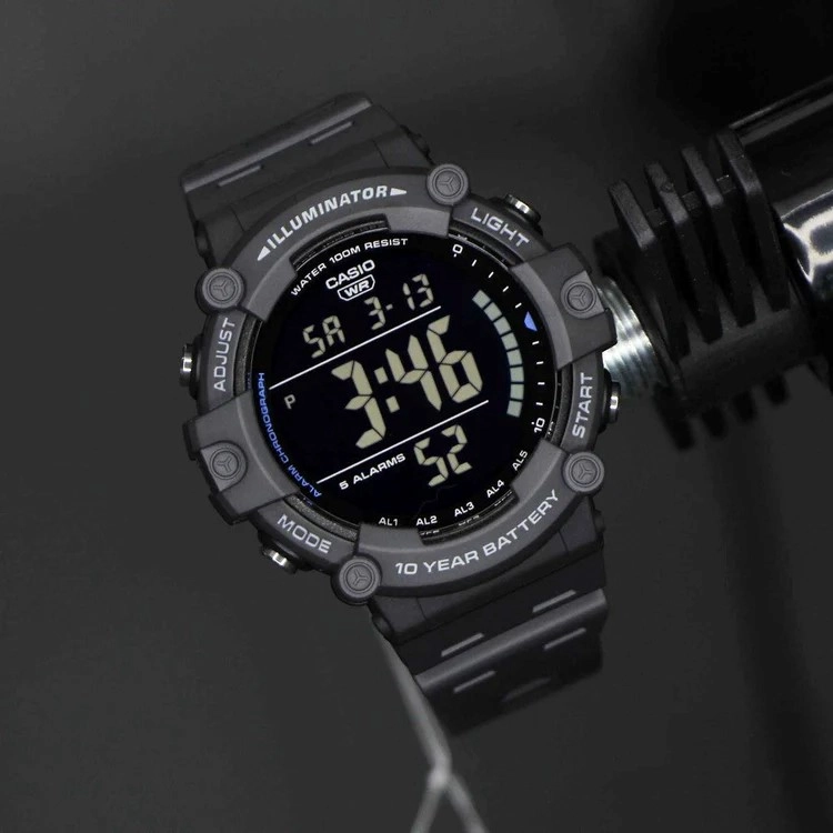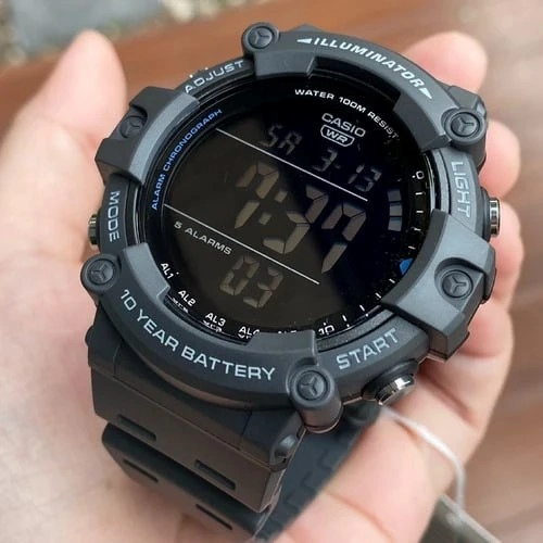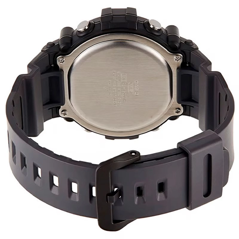 مناسب برای : آقایان مقاومت در برابر آب تا : 100 متر منبع انرژی : باتری معمولی فرم قاب : گرد جنس بدنه : رزین ضد حساسیت جنس قاب : رزین جنس بند : رزین نوع قفل : سگکی ساده عمرباتری : حدود 10 سال (باتری CR2032) نوع ساعتدیجیتال اندازه ساعت54.4 × 51.2 × 15.7 میلیمتر عرض (میلیمتر)51.2 ضخامت (میلیمتر)15.7 وزن57 گرم برندکاسیو (CASIO) مقاومت در برابر آب تا100 متر منبع انرژیباتری معمولی فرم قابگرد جنس بدنهرزین جنس قابرزین رنگ بدنهخاکستری / طوسی رنگ صفحهمشکی / دودی تیره رنگ قابخاکستری / طوسی جنس شیشهرزین جنس بندرزین رنگ بندخاکستری / طوسی اندازه بندبند با قفل قابل تنظیم بین 145 تا 215 میلیمتر زمان جهانیزمان دوگانه کرنومتربا دقت 1/100 ثانیه با ظرفیت 23 ساعت و 59 دقیقه و 59.99 ثانیه حالتهای اندازهگیری: زمان سپری شده، زمان مقطعی و زمانهای رکورد اول و دوم تایمربا دقت 1 ثانیه ظرفیت 24 ساعت تایمر شمارش معکوس آلارم5 آلارم روزانه (یک آلارم توقف موقت) سیگنال ساعتی نورپردازی و رنگ نورنور پسزمینه LED کهربایی تقویمتمام خودکار تا سال 2099 عمرباتریحدود 10 سال (باتری CR2032) دقت ساعت±30 ثانیه در ماه