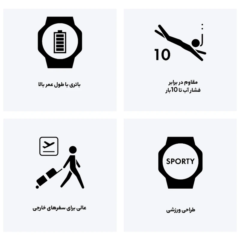 | مقاومت در برابر آب | تا عمق 100 متر |