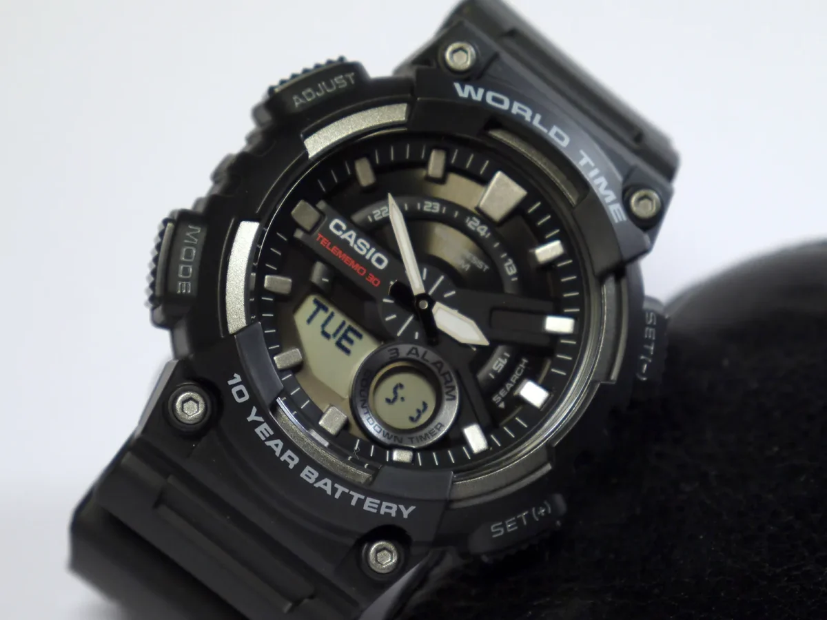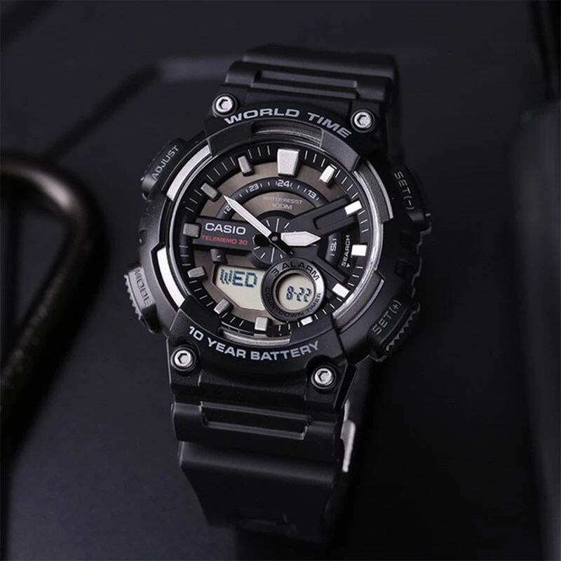 ظرفیت حافظه: حداکثر 30 مجموعه داده، با نام 8 کاراکتری و شماره تلفن 16 رقمی ساعت مچی اسپرت کاسیو مدل CASIO AEQ-110W-1A این ساعت دیجیتال با باتری ۱۰ ساله و مقاومت در برابر آب تا ۱۰۰ متر، انتخابی عالی برای استفاده روزمره است. دارای قابلیتهای مهمی همچون نمایش زمان جهانی، زمانسنج ۱/۱۰۰ ثانیه، Telememo 30، و آلارمها است که به آن کاربردی بودن و دوام بالایی میدهد. |