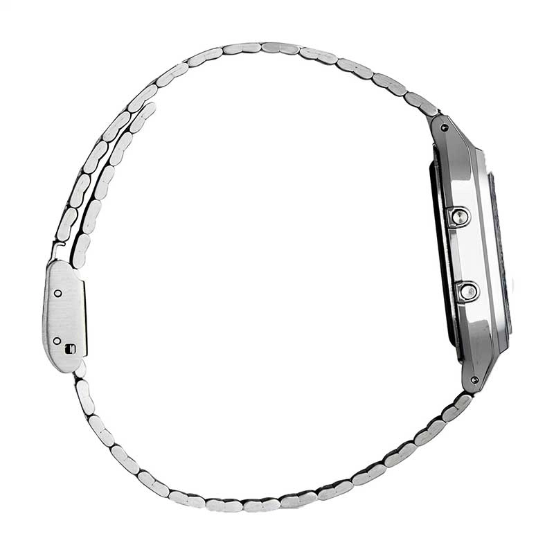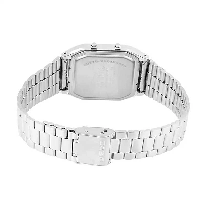 مناسب برای : یونیسکس مقاومت در برابر آب تا : صرفا کارهای روزمره منبع انرژی : باتری معمولی فرم قاب : چند ضلعی جنس بدنه : رزین با روکش کروم جنس قاب : رزین با روکش کروم جنس بند : استیل ضدزنگ نوع قفل : کلیپسی عمرباتری : 3 سال با باتری SR920W نوع ساعتآنالوگ و دیجیتال اندازه ساعت8.1 × 29.8 × 38.8 میلیمتر عرض (میلیمتر)29.8 ضخامت (میلیمتر)8.1 وزن47 گرم برندکاسیو (CASIO) مقاومت در برابر آب تاصرفا کارهای روزمره منبع انرژیباتری معمولی فرم قابچند ضلعی جنس بدنهرزین با روکش کروم جنس قابرزین با روکش کروم رنگ بدنهنقره ای رنگ صفحهآبی یخی رنگ قابنقرهای جنس شیشهرزین جنس بنداستیل ضدزنگ رنگ بندنقره ای اندازه بندقابل تنظیم از 140 تا 205 میلیمتر نوع قفلکلیپسی زمان جهانیدو زمانه کرنومترکرونومتر 1/100 ثانیهای ظرفیت 99 ساعت و 59 دقیقه و 59 ثانیه حالتهای اندازهگیری: زمان سپری شده آلارمآلارم روزانه زنگ اعلام هر ساعت ( هشدار راس ساعت) تقویمتقویم خودکار (28 روز برای فوریه) عمرباتری3 سال با باتری SR920W دقت ساعت±30 ثانیه در ماه
