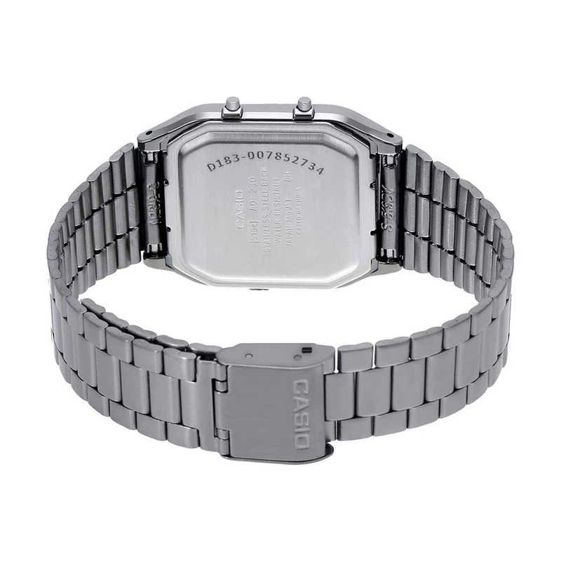 مردانه کلاسیک بند استیل اورجینال دو زمانه زمان سنج زنگ هشدار نمایش تاریخ کامل زمان سنج(Stopwatch) دیجیتال دو زمانه فلزی تقویم عقربه ای آنالوگ کوارتز مقاوم در برابر آب تا 30 متر اصالت کشور ژاپن گارانتی مادام العمر اصالت کالا مقاوم در برابر رطوبت جنس قاب از رزین جنس بند از استیل و استیل ضد زنگ جنس شیشه از طلق پی وی سی دارای قفل پیوسته چند تکه و منفصل دارای موتور کوارتز با کیفیت و دقیق دارای تقویم روزانه و نشانگر هفته یا شب و روز دارای کرونوگراف حرفهای با دقت 1/100 ثانیه طراحی کلاسیک زمان سنج(Stopwatch) | کورنوگراف | دو زمانه | زنگ هشدار